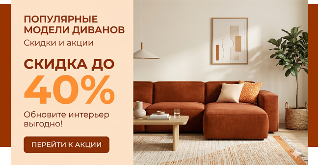Сегодня магазин диванов «Интерьер» предлагает более 1000 моделей от недорогой до элитной мягкой мебели от 40 ведущих фабрик России, и СНГ. Вся продукция отличается высоким качеством сборки, надежной и долговечной конструкцией и, что самое главное, приемлемой ценой. Все модели элитных и дешевых диванов продаются с минимальной наценкой – напрямую от производителей. Прямо сейчас мы предлагаем вам перейти в каталог и лично убедиться в этом.