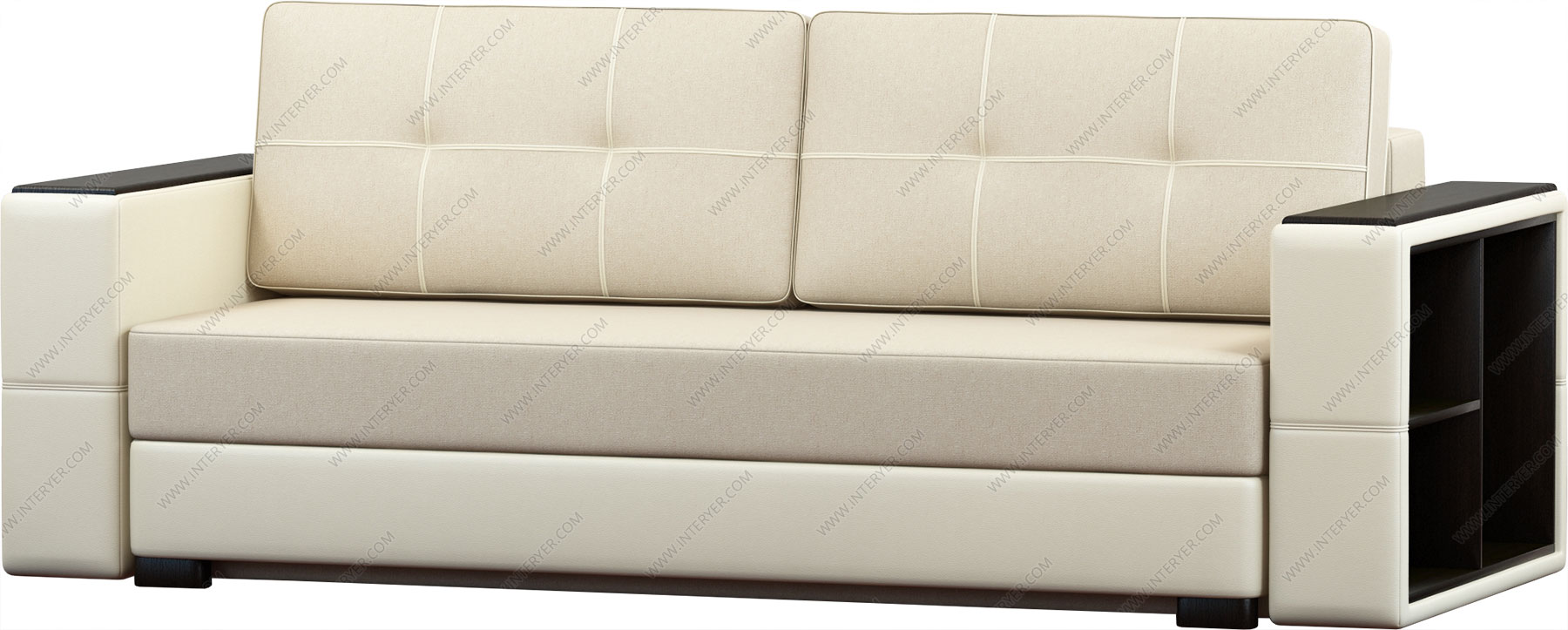 - подлокотники: имеют декоративные накладки из МДФ- комплектация: бар в одном подлокотнике, вместительный ящик для белья, подушки и подлокотники украшены декоративным кантом