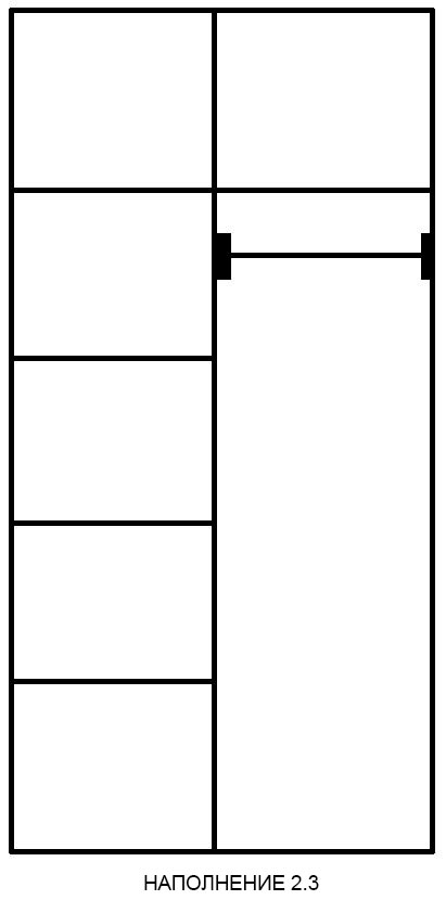 - Наполнение шкафа: внутреннее наполнение шкафа: 1. платяной - со штангой для верхней одежды, 2. бельевой - с полочками для белья